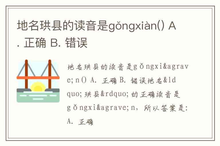 地名珙县的读音是gǒngxiàn() A. 正确 B. 错误