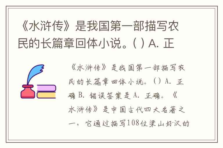 《水浒传》是我国第一部描写农民的长篇章回体小说。( ) A. 正确 B. 错误