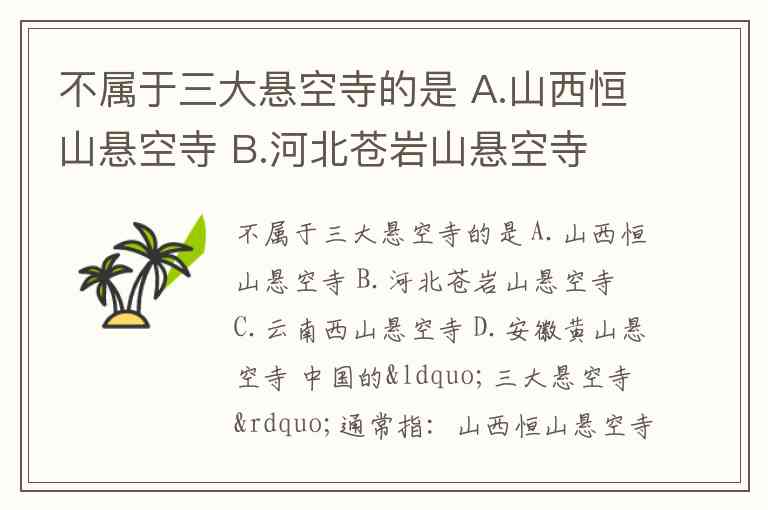 所以,不属于三大悬空寺的是 D. 安徽黄山悬空寺。