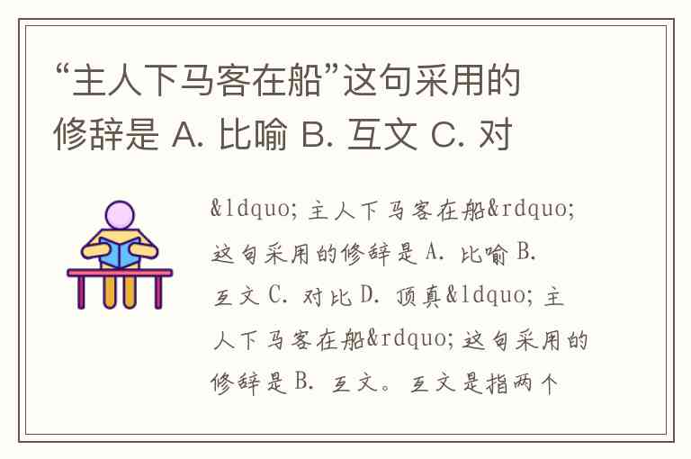 “主人下马客在船”这句采用的修辞是 A. 比喻 B. 互文 C. 对比 D. 顶真