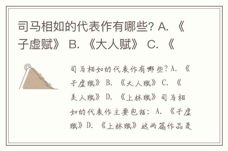 司马相如的代表作有哪些? A. 《子虚赋》 B. 《大人赋》 C. 《美人赋》 D. 《上林赋》