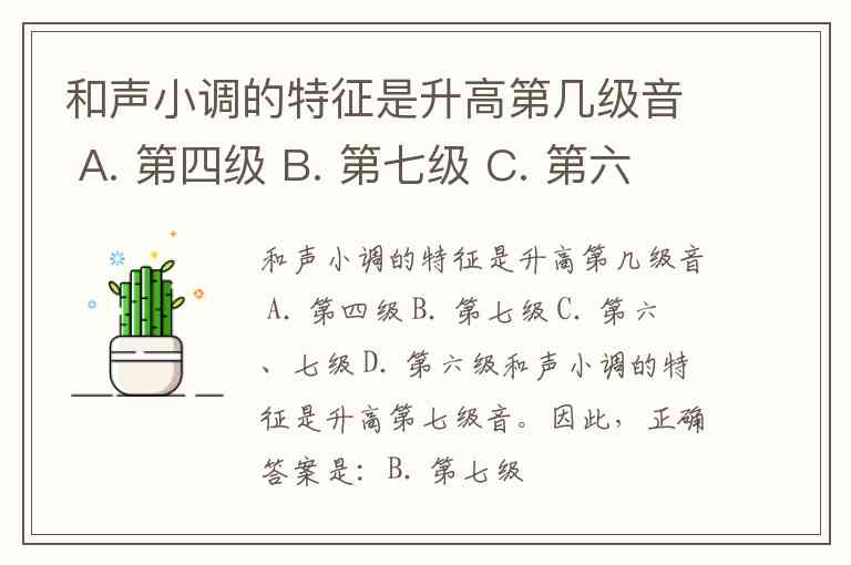 和声小调的特征是升高第几级音 A. 第四级 B. 第七级 C. 第六、七级 D. 第六级