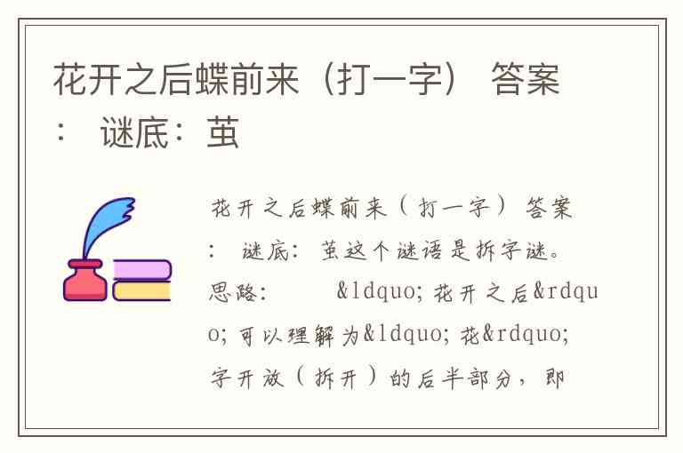 “蝶前来”意思是“蝶”字的前面部分,即“虫”。