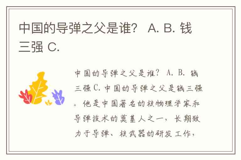 中国的导弹之父是谁? A. B. 钱三强 C.