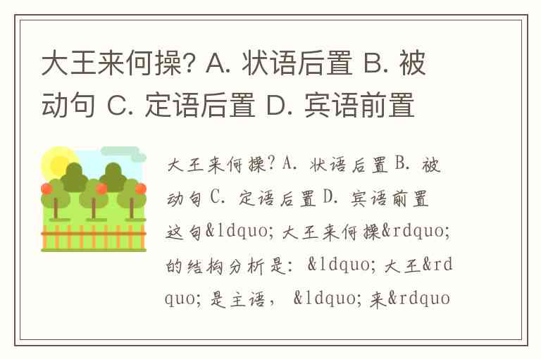 大王来何操? A. 状语后置 B. 被动句 C. 定语后置 D. 宾语前置