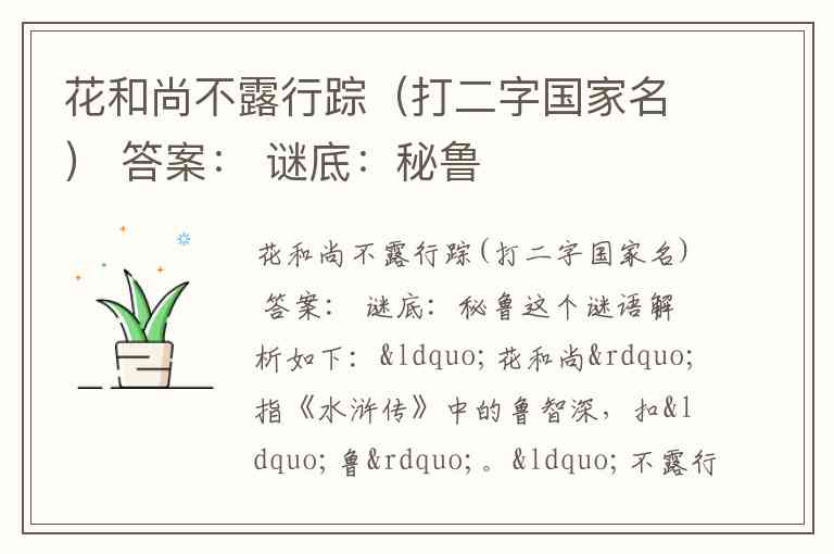 花和尚不露行踪(打二字国家名) 答案: 谜底:秘鲁