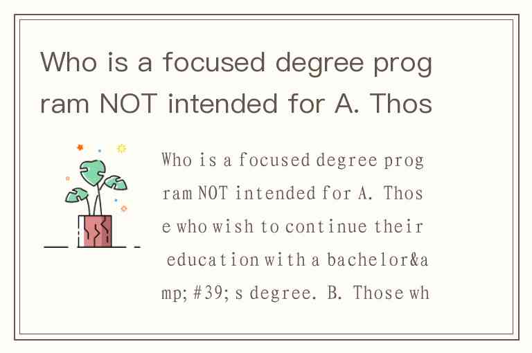 Who is a focused degree program NOT intended for A. Those who wish to continue their education with a bachelor's degree. B. Those who wish to receive one aspect of education. C. Those who wish to obtain general classes for their current jobs. D. Those who wish to get specific skills for their current careers.