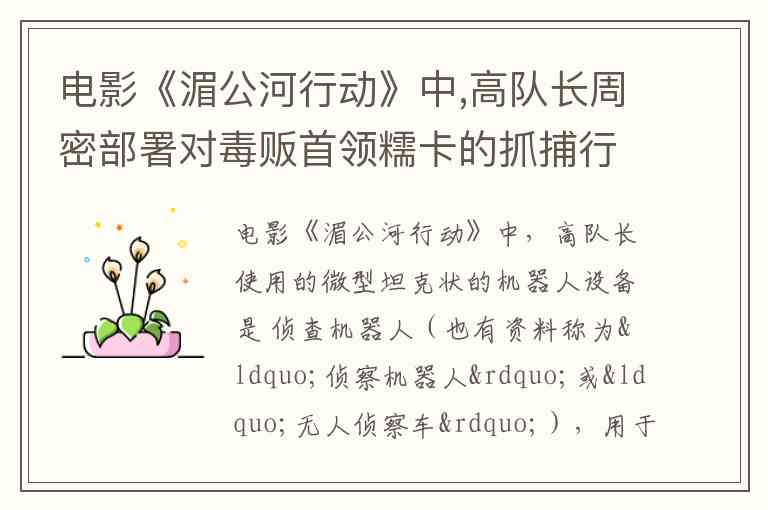 电影《湄公河行动》中,高队长周密部署对毒贩首领糯卡的抓捕行动,带领小分队包围了毒贩窝点,运用微型坦克状的___机器人设备,对毒贩窝点内部进行侦察。