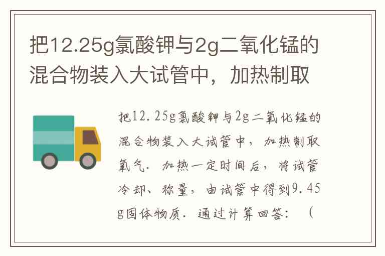 把12.25g氯酸钾与2g二氧化锰的混合物装入大试管中,加热制取氧气.加热一定时间后,将试管冷却、称量,由试管中得到9.45g固体物质.通过计算回答: (1)得到的氧气在标准状况下的体积是多少升(在标准状况下,32g氧气的体积为22.4L)?______ (2)氯酸钾是否已全部分解?______.