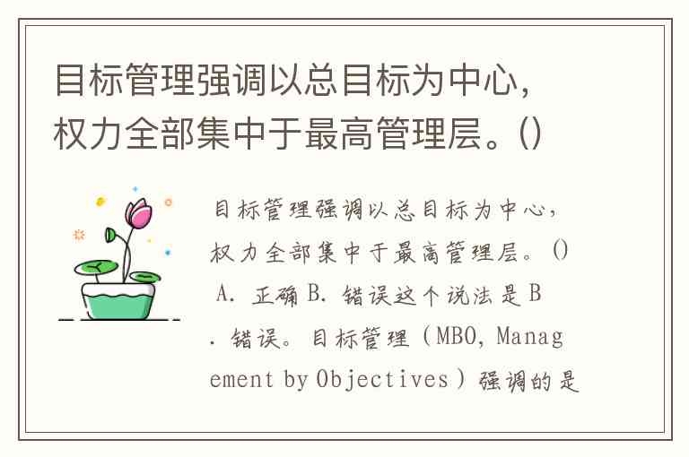 目标管理强调以总目标为中心,权力全部集中于最高管理层。() A. 正确 B. 错误