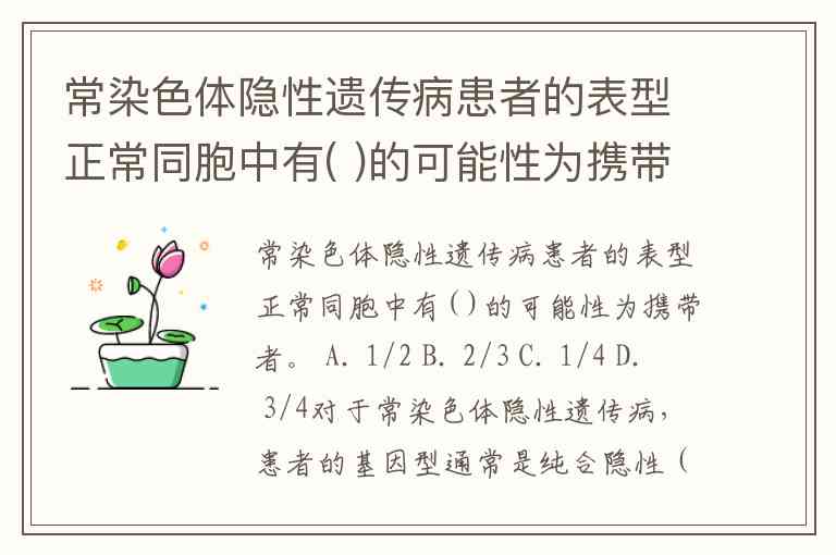 常染色体隐性遗传病患者的表型正常同胞中有( )的可能性为携带者。 A. 1/2 B. 2/3 C. 1/4 D. 3/4