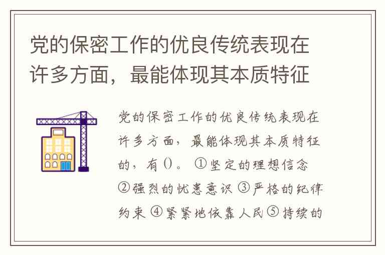 解析:党的保密工作优良传统本质特征包括: