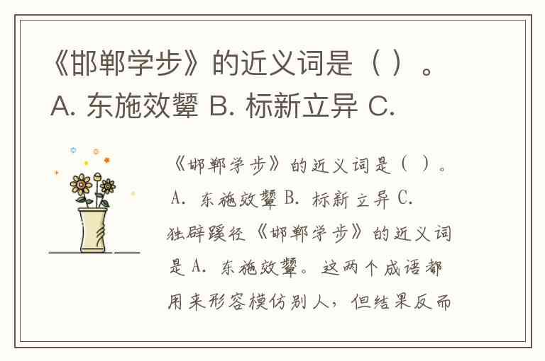 《邯郸学步》的近义词是( )。 A. 东施效颦 B. 标新立异 C. 独辟蹊径