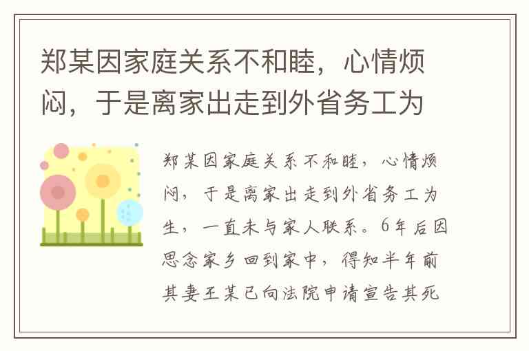 郑某因家庭关系不和睦,心情烦闷,于是离家出走到外省务工为生,一直未与家人联系。6年后因思念家乡回到家中,得知半年前其妻王某已向法院申请宣告其死亡并改嫁李某,郑某与王某的两岁女儿郑芯已由张某收养,闲置的住房被村办工厂占有。郑某可以行使以下哪些权利并会得到支持( ) A. 申请法院撤销死亡宣告 B. 请求法院确认王某与李某的婚姻关系无效 C. 请求法院判令解除张某对郑芯的收养关系 D. 要求村办工厂归还占有的住房