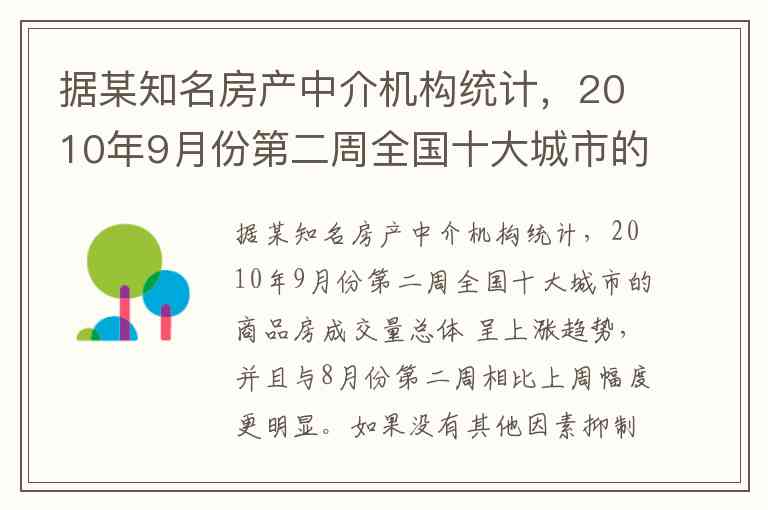 成交量上涨:统计数据显示,全国十大城市的商品房成交量总体呈上涨趋势,并且与8月份相比,上周的增幅更为明显。