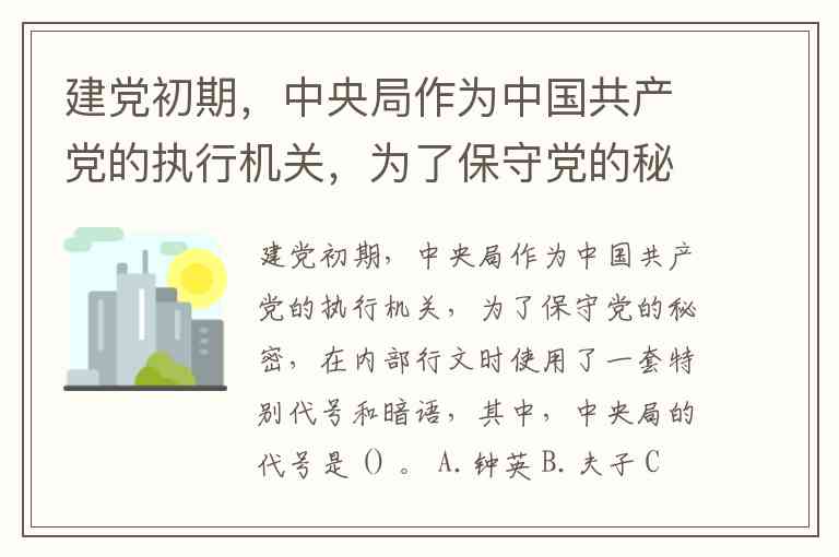 建党初期至大革命时期,中共中央在秘密通信中曾使用过多个代号:
