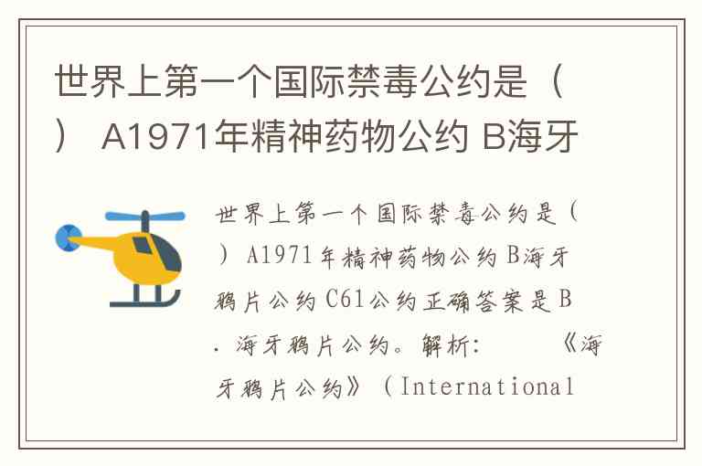 因此,第一个国际禁毒公约是 B。