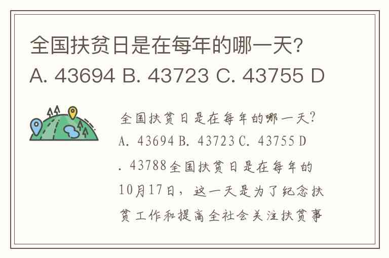 全国扶贫日是在每年的哪一天? A. 43694 B. 43723 C. 43755 D. 43788