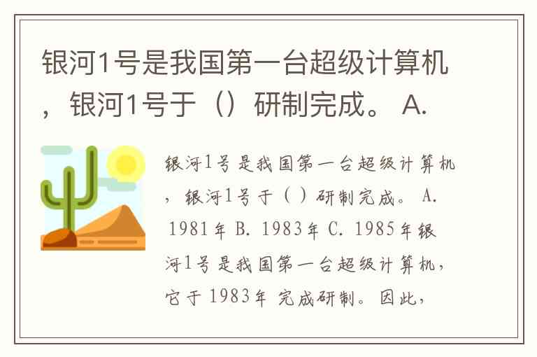 银河1号是我国第一台超级计算机,银河1号于()研制完成。 A. 1981年 B. 1983年 C. 1985年