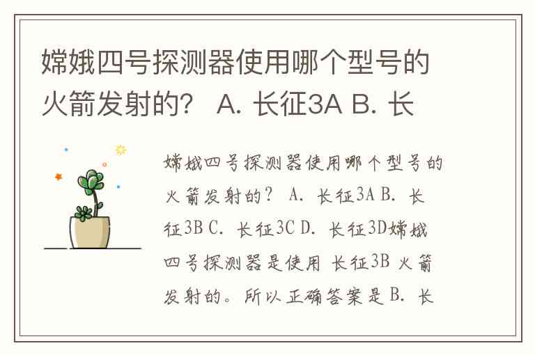 嫦娥四号探测器使用哪个型号的火箭发射的? A. 长征3A B. 长征3B C. 长征3C D. 长征3D