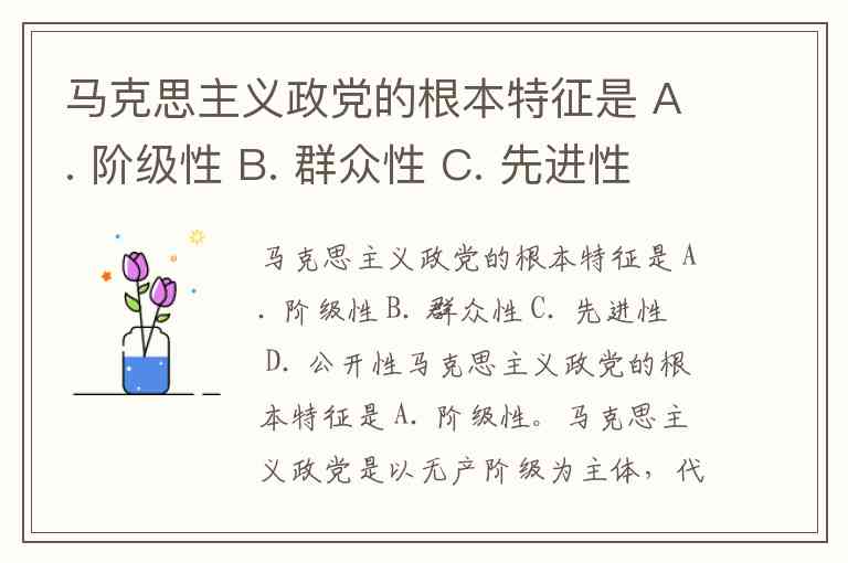 马克思主义政党的根本特征是 A. 阶级性 B. 群众性 C. 先进性 D. 公开性