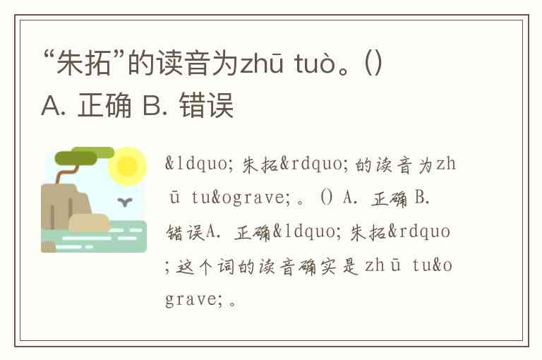 “朱拓”的读音为zhū tuò。() A. 正确 B. 错误