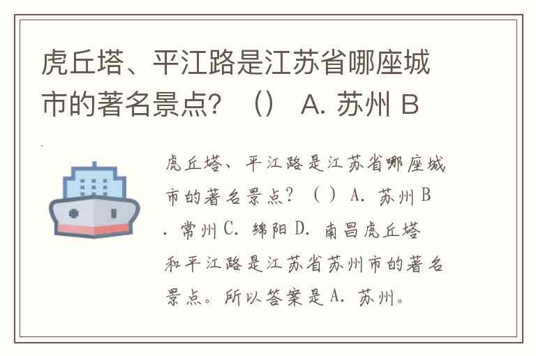虎丘塔、平江路是江苏省哪座城市的著名景点?() A. 苏州 B. 常州 C. 绵阳 D. 南昌