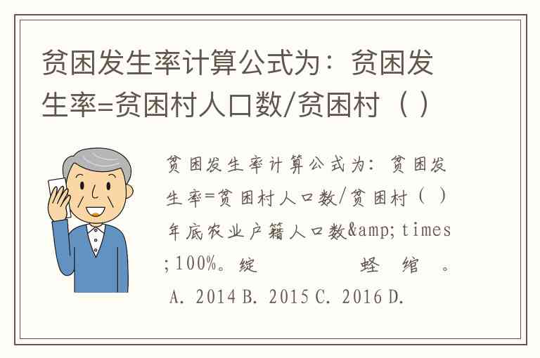 贫困发生率计算公式为:贫困发生率=贫困村人口数/贫困村( )年底农业户籍人口数×100%。绽萬璉轆娛閬蛏鬮绾瀧。 A. 2014 B. 2015 C. 2016 D. 2017