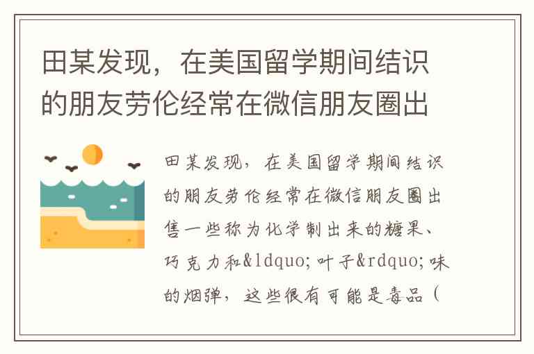 田某发现,在美国留学期间结识的朋友劳伦经常在微信朋友圈出售一些称为化学制出来的糖果、巧克力和“叶子”味的烟弹,这些很有可能是毒品()。 A.可卡因 B.冰毒 C.海洛因 D.大麻
