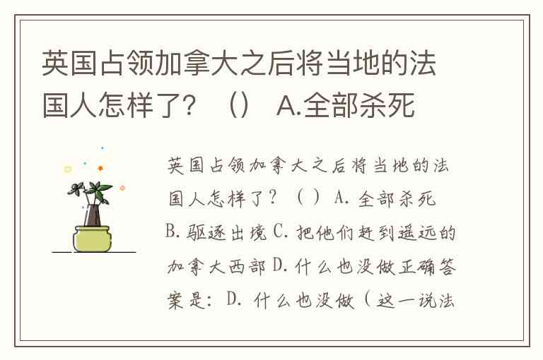 1763年,七年战争结束,法国战败,根据《巴黎和约》,法国将加拿大(新法兰西)割让给英国。面对当地数万名法裔天主教居民,英国政府的处理方式如下: