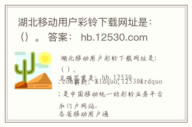 湖北移动用户彩铃下载网址是:()。正确答案是:hb.12530.com