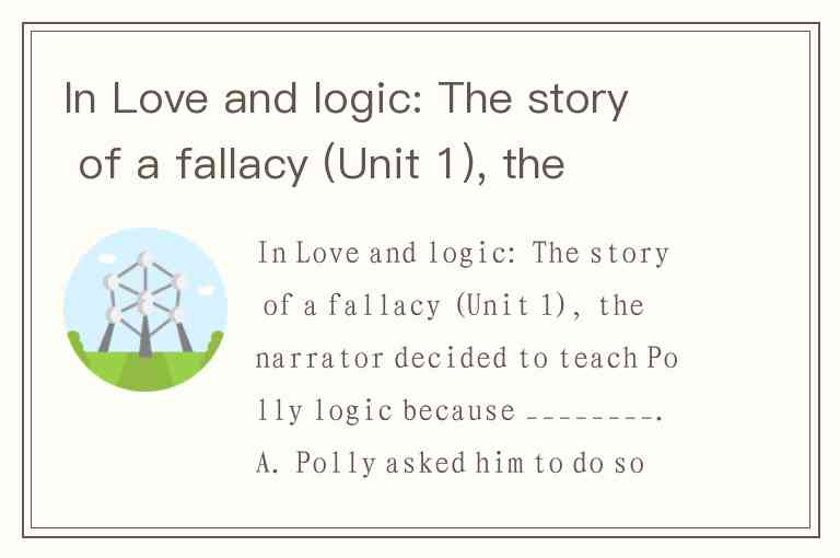 In Love and logic: The story of a fallacy (Unit 1), the narrator decided to teach Polly logic because ________. A. Polly asked him to do so B. Polly could refuse Rob after learning logic C. he believed that logic is essential to clear-thinking D. Polly could also become a lawyer after learning l