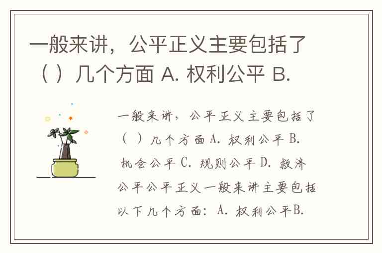 一般来讲,公平正义主要包括了( )几个方面 A. 权利公平 B. 机会公平 C. 规则公平 D. 救济公平