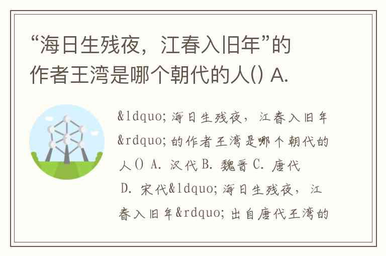 “海日生残夜,江春入旧年”的作者王湾是哪个朝代的人() A. 汉代 B. 魏晋 C. 唐代 D. 宋代
