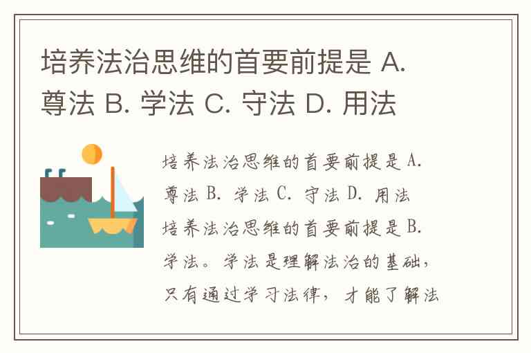 培养法治思维的首要前提是 A. 尊法 B. 学法 C. 守法 D. 用法
