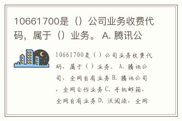 10661700是()公司业务收费代码,属于()业务。 A. 腾讯公司,全网自有业务 B. 腾讯公司,全网合作业务 C. 手机邮箱,全网自有业务 D. 沃阅读,全网合作业务
