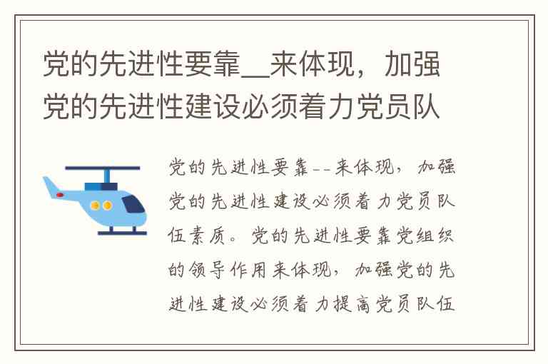 党的先进性要靠__来体现,加强党的先进性建设必须着力党员队伍素质。