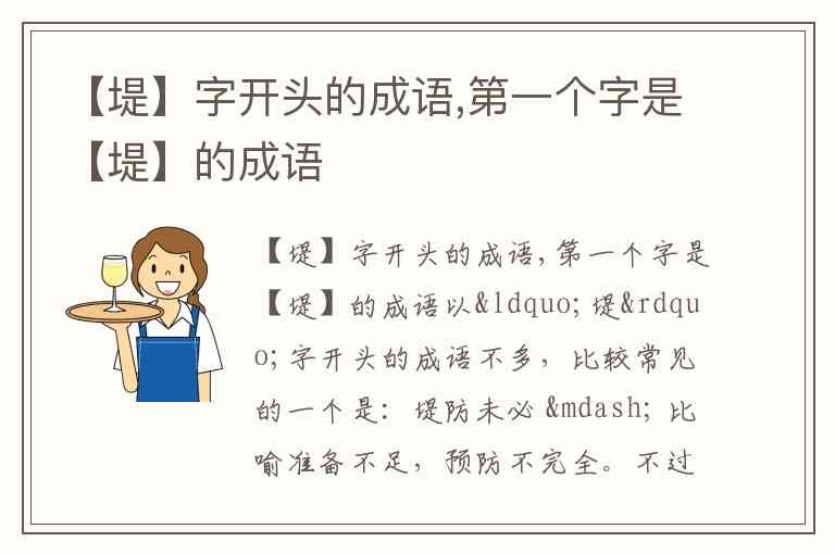 以“堤”字开头的成语不多,比较常见的一个是: