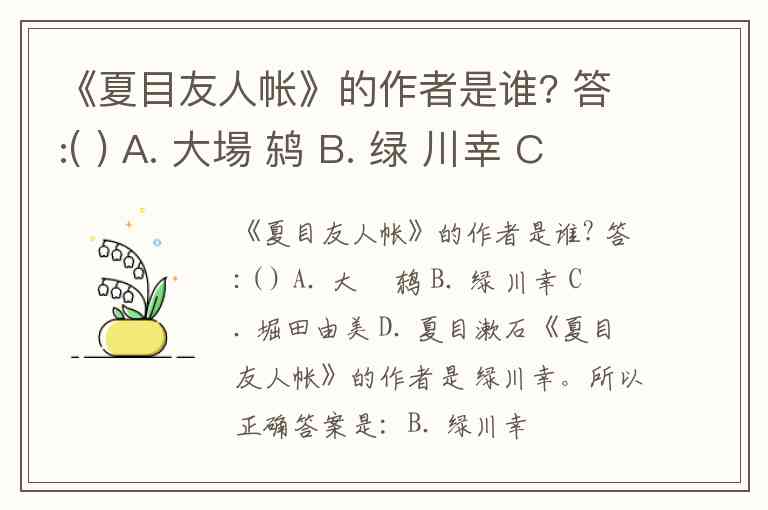《夏目友人帐》的作者是谁? 答:( ) A. 大場 鸫 B. 绿 川幸 C. 堀田由美 D. 夏目漱石