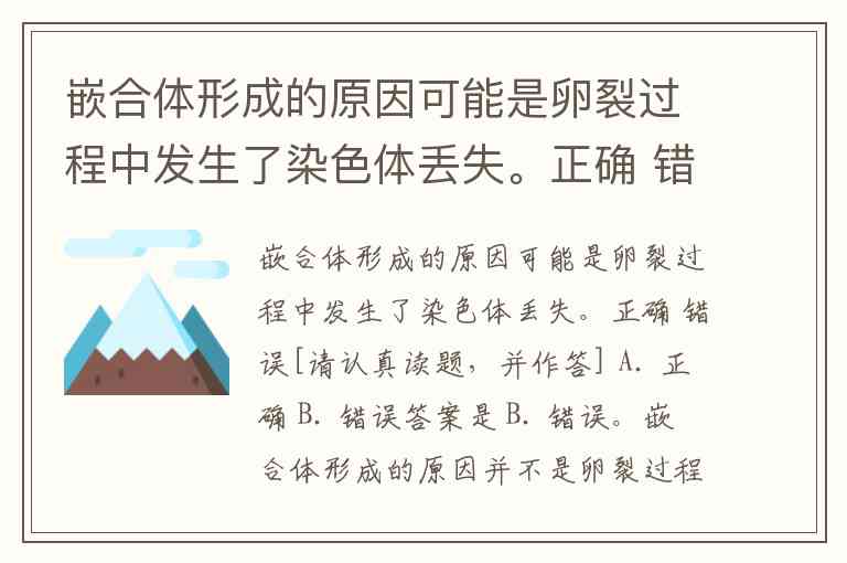 嵌合体形成的原因可能是卵裂过程中发生了染色体丢失。正确 错误[请认真读题,并作答] A. 正确 B. 错误