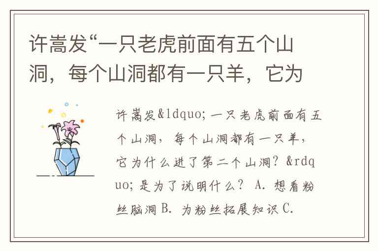 许嵩发“一只老虎前面有五个山洞,每个山洞都有一只羊,它为什么进了第二个山洞?”是为了说明什么? A. 想看粉丝脑洞 B. 为粉丝拓展知识 C. 他想发什么就发什么 D. 他想什么时候就什么时候发帖