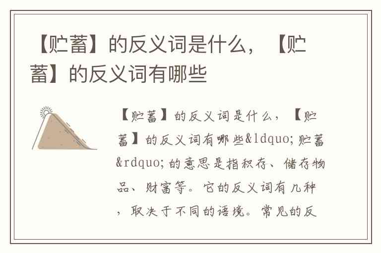 “贮蓄”的意思是指积存、储存物品、财富等。它的反义词有几种,取决于不同的语境。常见的反义词包括: