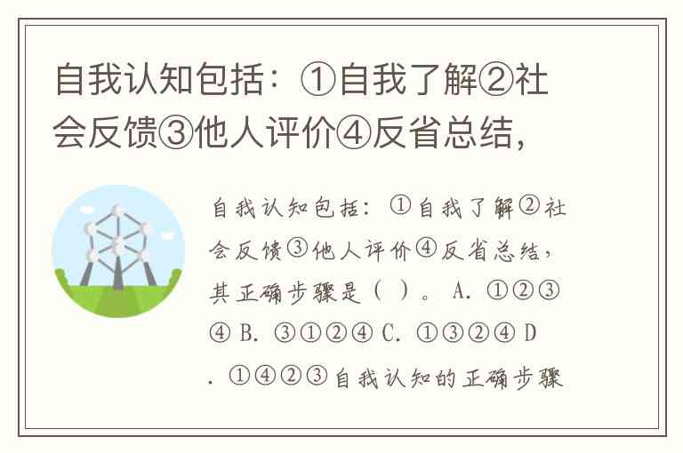 自我认知包括:①自我了解②社会反馈③他人评价④反省总结,其正确步骤是( )。 A. ①②③④ B. ③①②④ C. ①③②④ D. ①④②③
