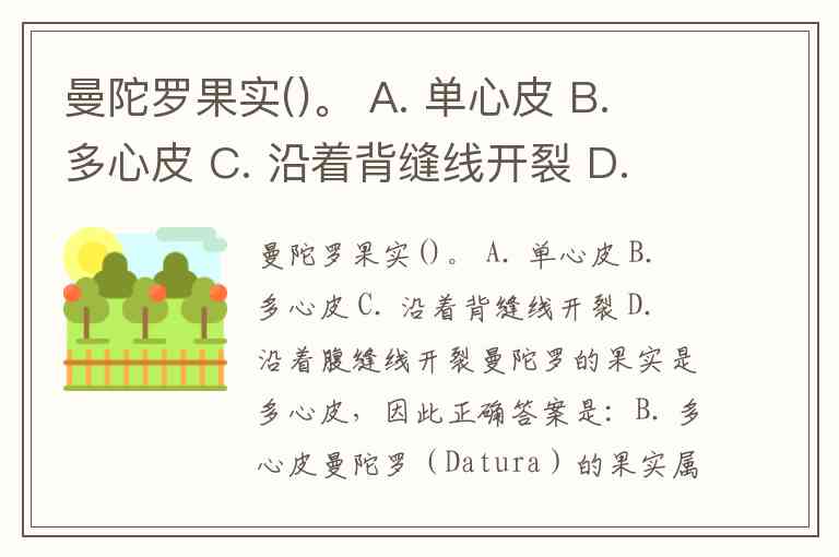 曼陀罗的果实是多心皮,因此正确答案是: