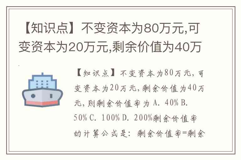 【知识点】不变资本为80万元,可变资本为20万元,剩余价值为40万元,则剩余价值率为 A. 40% B. 50% C. 100% D. 200%