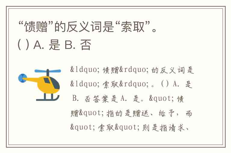 “馈赠”的反义词是“索取”。( ) A. 是 B. 否