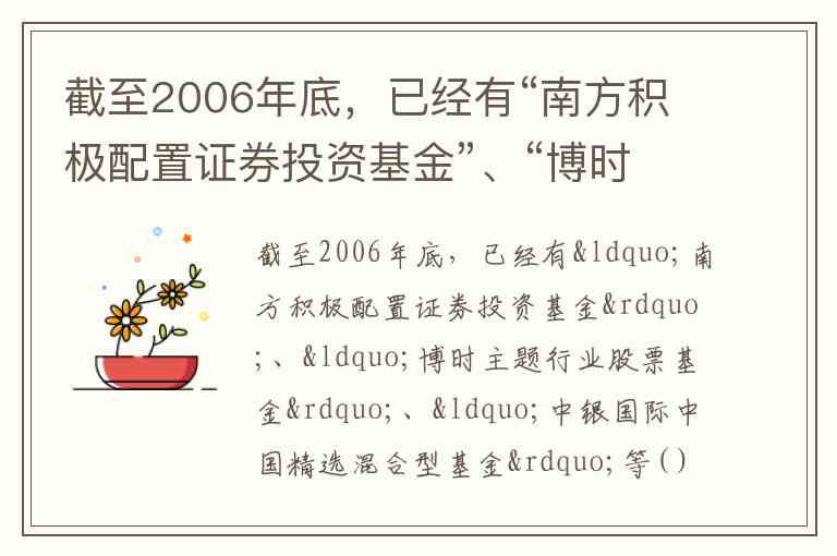截至2006年底,已经有“南方积极配置证券投资基金”、“博时主题行业股票基金”、“中银国际中国精选混合型基金”等( )只LOF在深圳证券交易所上市交易。 A. 10 B. 13 C. 15 D. 20