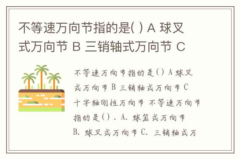 不等速万向节指的是( ) A 球叉式万向节 B 三销轴式万向节 C 十字轴刚性万向节 不等速万向节指的是( ) . A. 球笼式万向节 B. 球叉式万向节 C. 三销轴式万向节 D. 十字轴刚性万向节