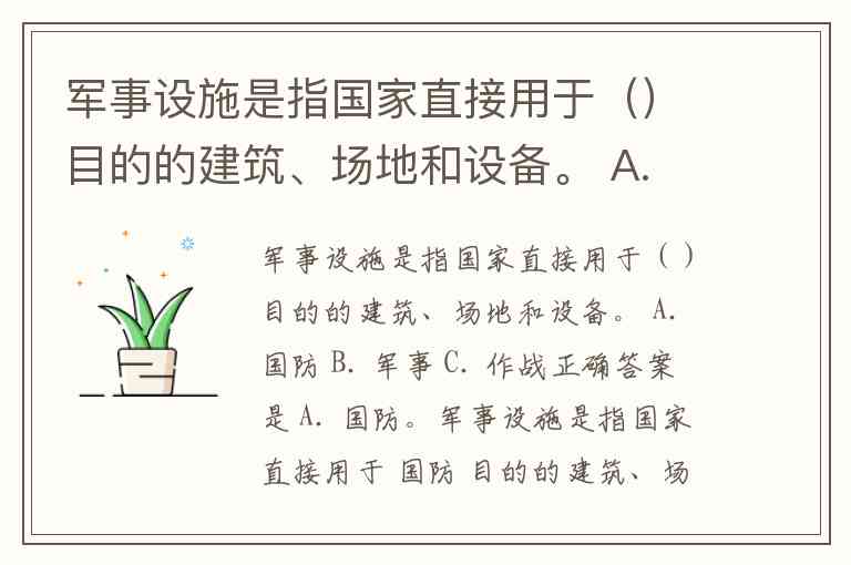 军事设施是指国家直接用于()目的的建筑、场地和设备。 A. 国防 B. 军事 C. 作战
