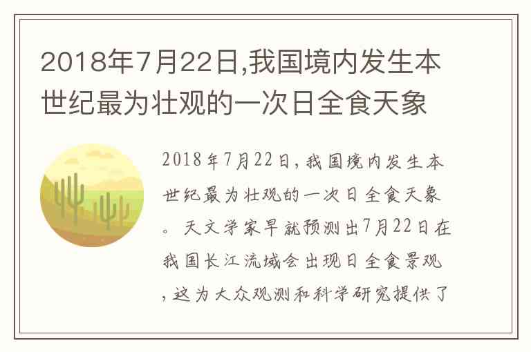 2018年7月22日的日全食是天文学家早已预测到的,这表明天体运行是有规律可循的(即事物运动是有规律的)。